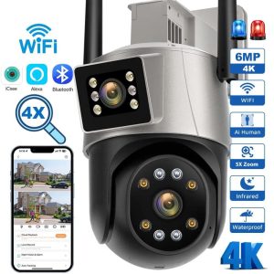 The camera system uses the trusted V380 Pro mobile app, allowing users to monitor their property remotely in real time. With 4 million pixel resolution, the footage remains clear and detailed even in challenging lighting conditions. The camera features a two-way intercom, enabling live audio communication between the user and the surveillance location, which is ideal for interactive monitoring or real-time security alerts.