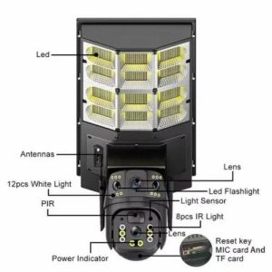 This unit also includes a high-efficiency street light, integrated with the CCTV system to provide additional illumination at night. The light uses 180 high-performance 2835 LED chips from the renowned MLS (Mulinsen) brand, offering broad and bright coverage.