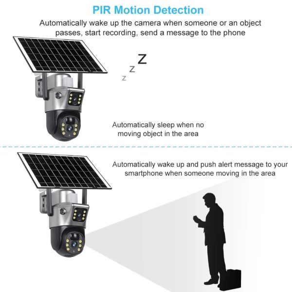 Built with advanced PIR sensors, the camera detects human movement accurately, reducing false alarms triggered by pets, wind, or environmental changes.